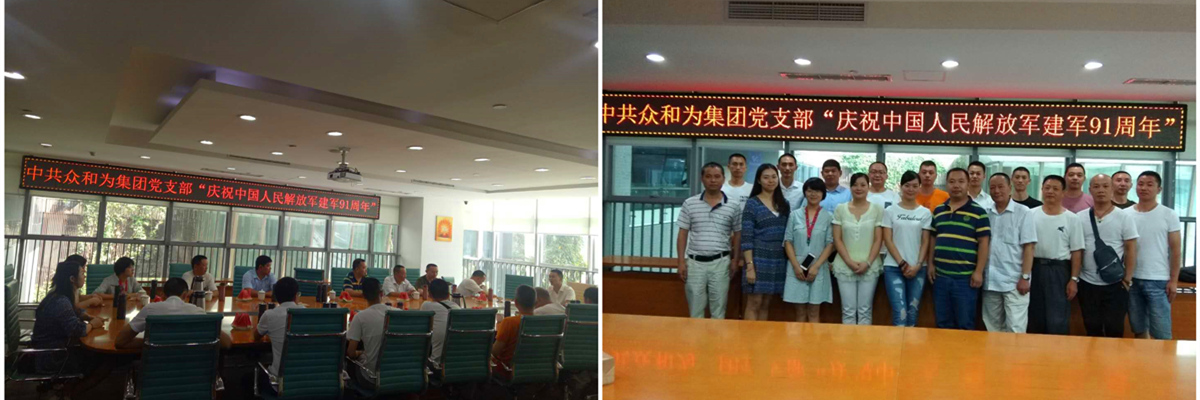 为庆祝中国人民解放军建军91周年,众和为党支部组织了党员、集团入党积极分子及退伍军人,开展了以“铭记历史、缅怀先烈、不忘初心”为主题的系列党日活动,通过参观红色教育基地、开展座谈会等方式同庆建军节,向英勇的中国人民解放军致敬!