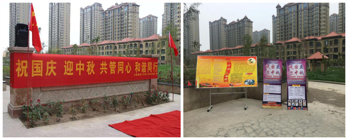 2017年10月1日,借此双节来临之际,众和为物业朝阳雅居物业中心于朝阳雅居东门广场举行了以“祝国庆、迎中秋;共管同心、和谐同行”为主题的有奖游戏互动活动。众和为希望以此方式在这入秋的北国家园里,将暖意传递到业主心间,让朝阳雅居大家庭越来越美。